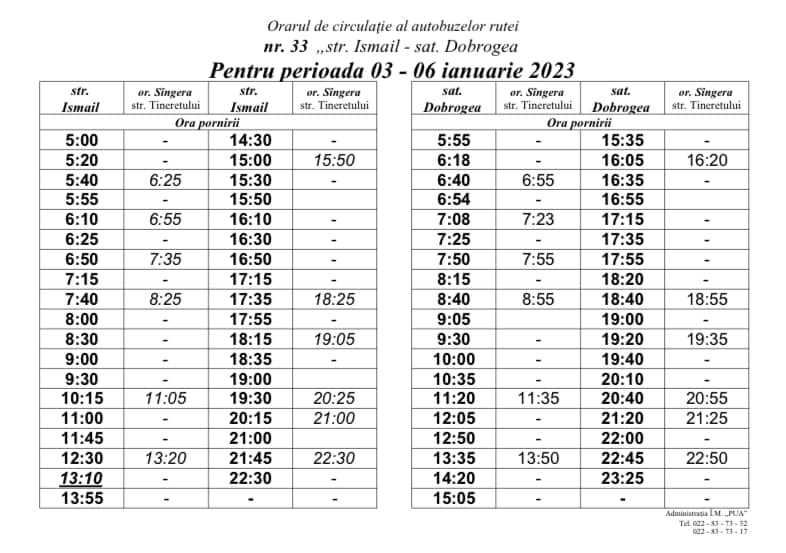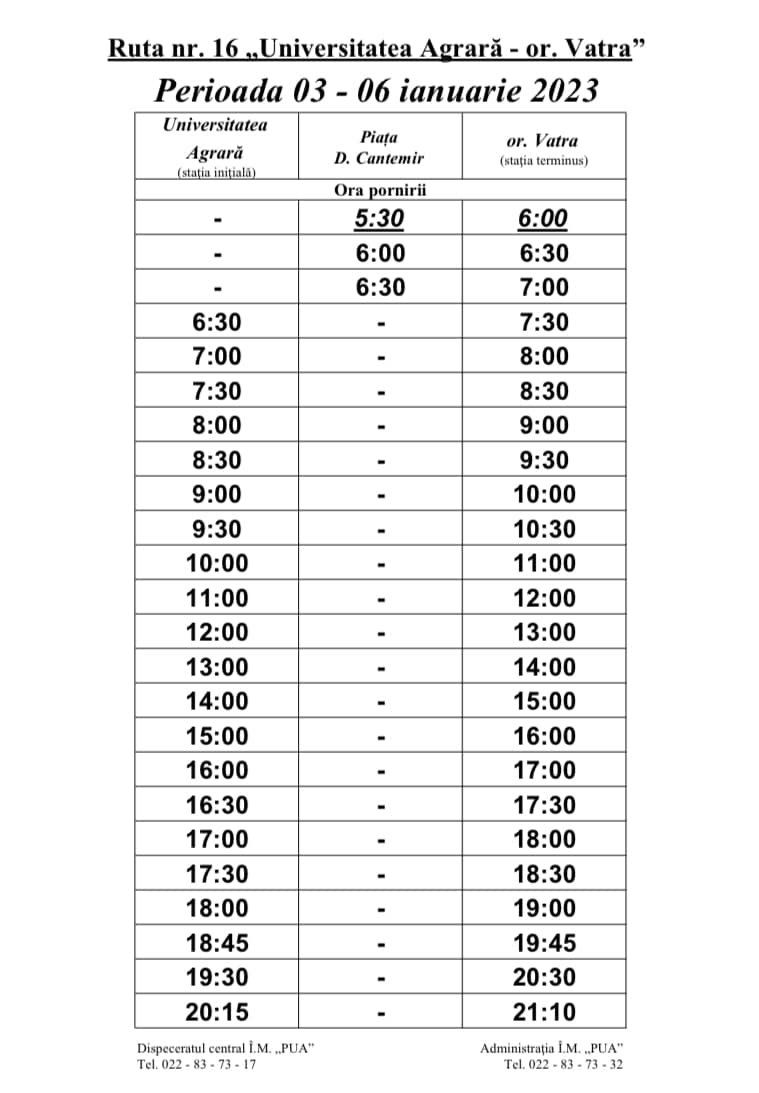 Programul de activitate a autobuzelor de pe rutele nr. 2, 4, 18A, 16, 9, 39, 23 și 33, pentru perioada 03.01.2023 - 06.01.2023
