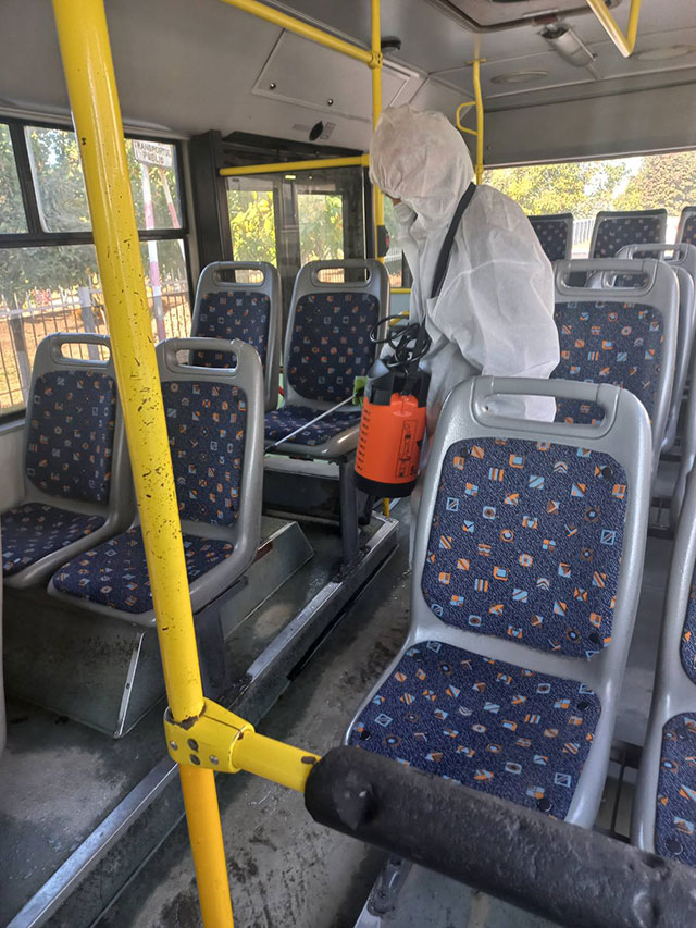 În scopul asigurării măsurilor de prevenire și control a răspândirii infecției în perioada pandemiei COVID-l9 în transportul public al Î. M. ”Parcul urban de autobuze”, administrația asigură autobuzele cu soluții dezinfectante și tot echipamentul necesar: măști de protecție, mănuși, pulverizator, combinezon de protecție chimică, respirator, lavete, etc.
